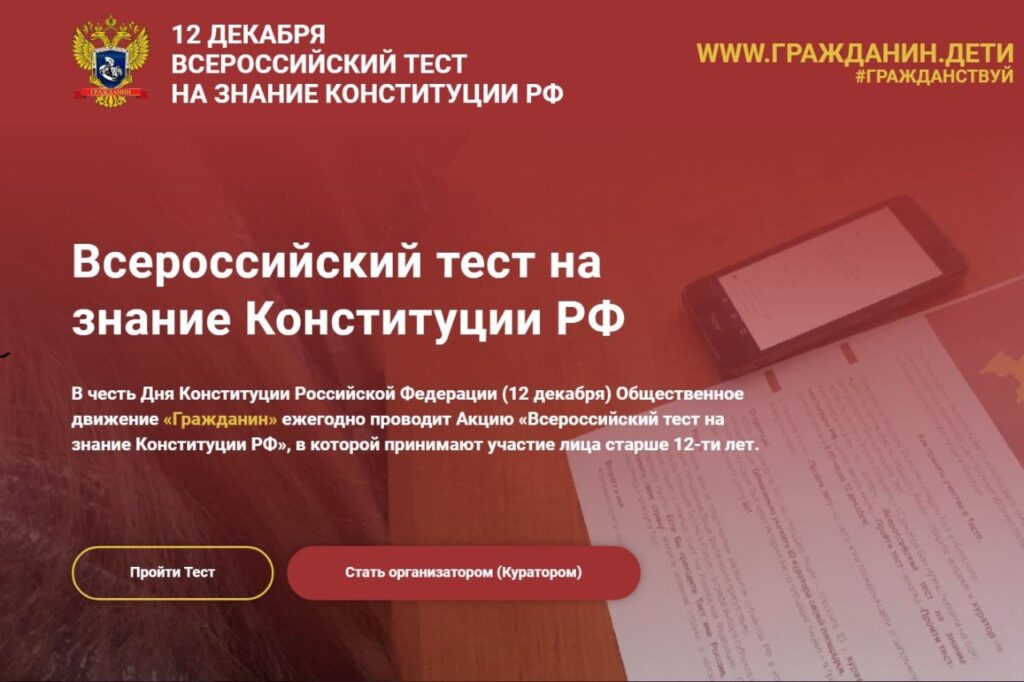 В ДЕКАБРЕ ПРОЙДЁТ ЮБИЛЕЙНЫЙ ВСЕРОССИЙСКИЙ ТЕСТ НА ЗНАНИЕ КОНСТИТУЦИИ РФ В ДЕКАБРЕ ПРОЙДЁТ ЮБИЛЕЙНЫЙ ВСЕРОССИЙСКИЙ ТЕСТ НА ЗНАНИЕ КОНСТИТУЦИИ РФ 21.11.2025 | В Правительстве области